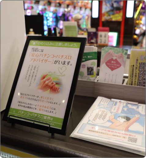 沖縄パチンコ・スロット協同組合に加盟する店舗では、「パチンコを適度に遊ぶ娯楽」とする目標を掲げ依存症対策にも積極的に取り組んでいます。啓蒙活動はもちろん、依存症の治療を行う公的機関への寄付・支援活動などを行っています。またご本人・ご家族が申告を行うことで、上限額を超えて利用できなくするプログラムなどもあります。