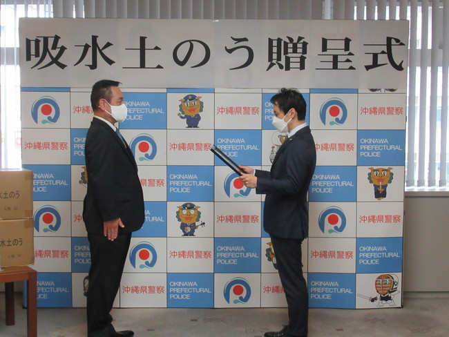 県警に吸水土のうを寄贈及び感謝状の授与